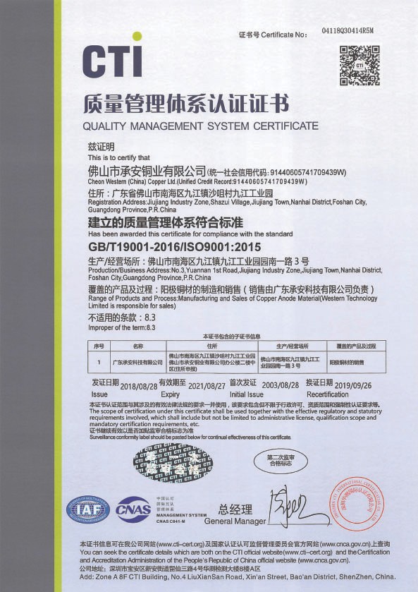 GB/T19001-2016/ISO9001:2015(佛山市承安集團股份有限公司)